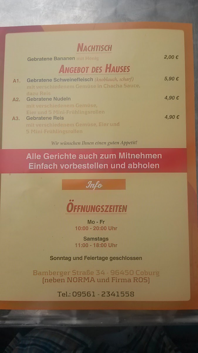 Welcome to Hoan Kim Asia Bistro, an exceptional Asian restaurant located in Coburg, Germany. Nestled at Bamberger Str. 34, this bistro is renowned for its consistently high-quality dishes at wallet-friendly prices. Customers rave about the quick service, even during peak hours, ensuring you won't be kept waiting for your favorite meal.